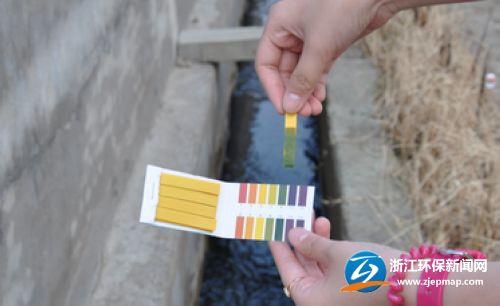 記者現場對污水進行了初步的檢測,結果顯示為強堿性。
