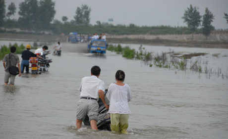 2007年7月4日,由于處于上游的江蘇洪澤湖放水,沖洗下游的淮沭河的污染團,造成沭陽縣境內的溫州大道被水淹沒,機動車與行人只得冒險涉水過橋。