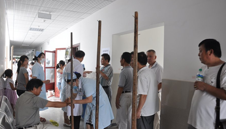 2011年8月9日,江西瑞昌市工業(yè)園西區(qū)一工地發(fā)生自來水中毒事故,工地上施工人員及周邊住戶,先后共有約50人早餐后出現消化不良反應,部分患者伴有嘔吐現象。大量中毒市民正在瑞昌市中醫(yī)院接受治療。中毒,自來水中毒,江西,瑞昌,飲用水