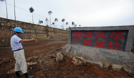 2011年8月14日,云南省曲靖市陸良縣,鉻渣堆放場。云南曲靖有5000噸鉻渣倒入水庫,致使水庫致命六價鉻超標2000倍。事后云南將30萬立方米受污染水,鋪設管道排入珠江源頭南盤江。