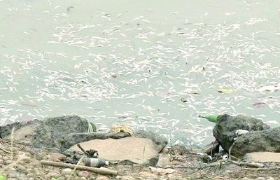 如此大面積的死魚究竟是什么原因造成的?經常在此垂釣的市民周先生猜測:“小魚的抵抗力弱,很可能是在上游被毒死的。你看這些魚都是從上面漂下來的。”