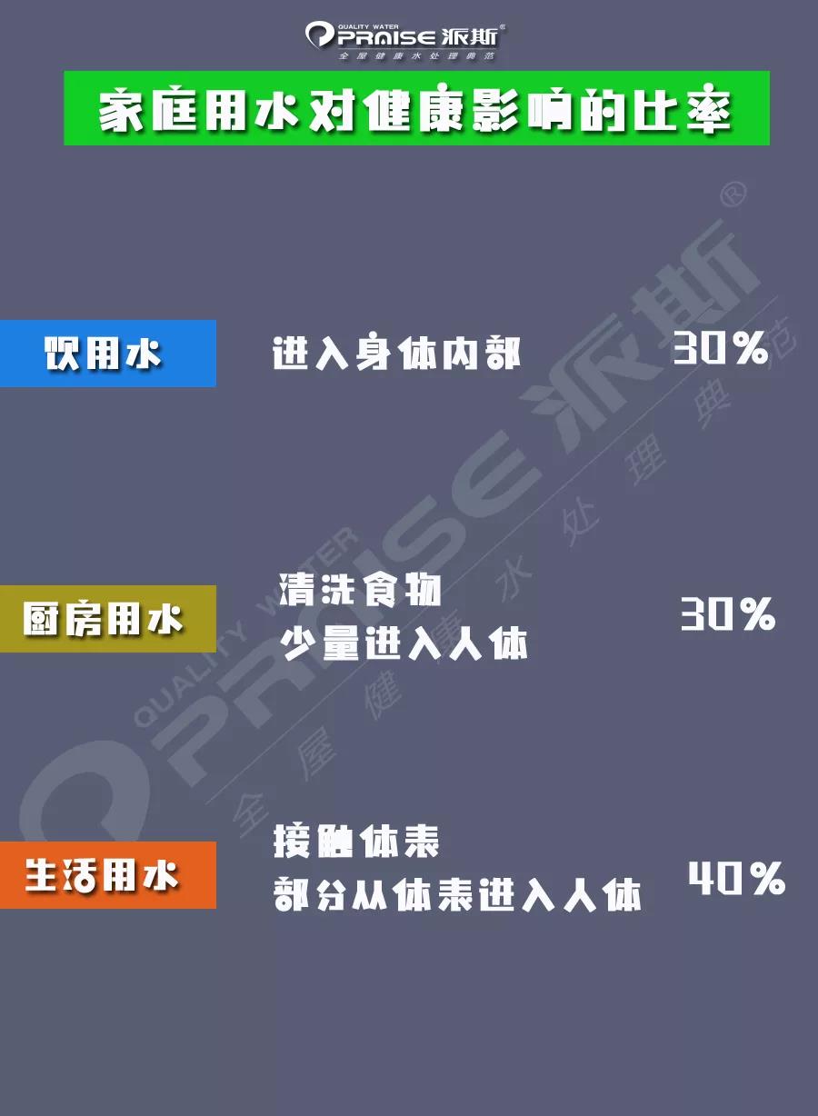 研究證明,生活用水才是家庭用水中對健康威脅最大的存在。每個人對飲水需求有限,以常人論,每人每天的飲水量大致在1.5L左右。廚房用水和做飯的頻次有關(guān),洗菜、淘米、煮飯等都會消耗大量用水,一天三頓的話,三口之家,即使不算上洗水果之類的用水,節(jié)省算也可以達到每天15L以上。而生活用水則就更多了,因為你需要洗澡、洗臉、刷牙、沖廁所、澆花、冷氣、供暖等等,起碼是廚房用水的10倍以上。所以,人體每天與生活用水接觸是最多的,僅洗浴一項就超過了飲水和廚房用水的量。而生活用水雖只接觸了人的體表,但是會隨人體皮膚毛孔、粘膜等部位進入人體,水中的一些有害物質(zhì)還是會進入到人體。一個常見的現(xiàn)象就是,你在洗澡的時候,是在一個密閉的洗浴空間,隨著洗浴時間的增長,你會發(fā)現(xiàn)空氣中會有一股“自來水”的味道,這就是自來水中余氯揮發(fā)產(chǎn)生的效果,會對人體產(chǎn)生一系列看不到的傷害,時間一長,增加人體很多疾病風險。