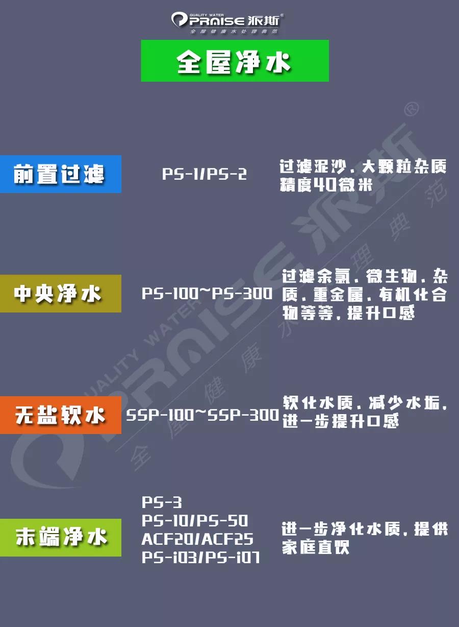 要知道,全屋凈水是一個全新的凈水概念,他涉及的環(huán)節(jié)包括前置過濾、中央凈水、中央軟水、末端凈水等。以派斯為例,前置過濾裝置的過濾精度為40微米,主要過濾水中的一些大的顆粒狀物質(zhì),泥沙等;中央凈水為家庭常用水解決余氯、微生物、雜質(zhì)、重金屬、有機化合物等問題,還能有效提升水的口感;派斯SSP系列無鹽軟水機,通過物理結(jié)晶,有效軟化水質(zhì),減少水垢,提升水的口感,同時還能夠為家庭水暖、中央冷氣提供一層有效的保障;派斯末端凈水產(chǎn)品,在全屋凈水中,是一個最后關(guān)口,再次過濾水中各種有害物質(zhì)的同時,有效減少二次污染,提供家庭直飲。